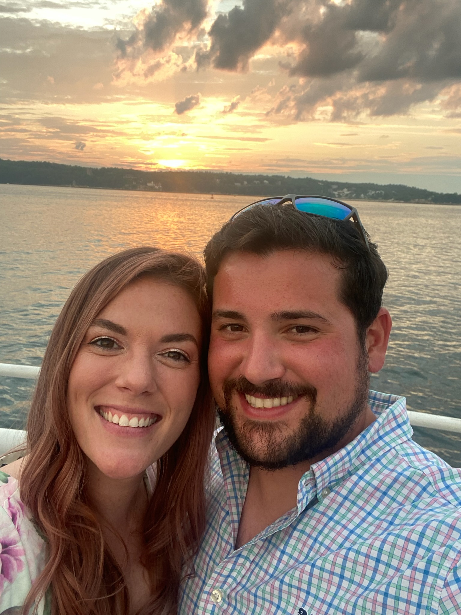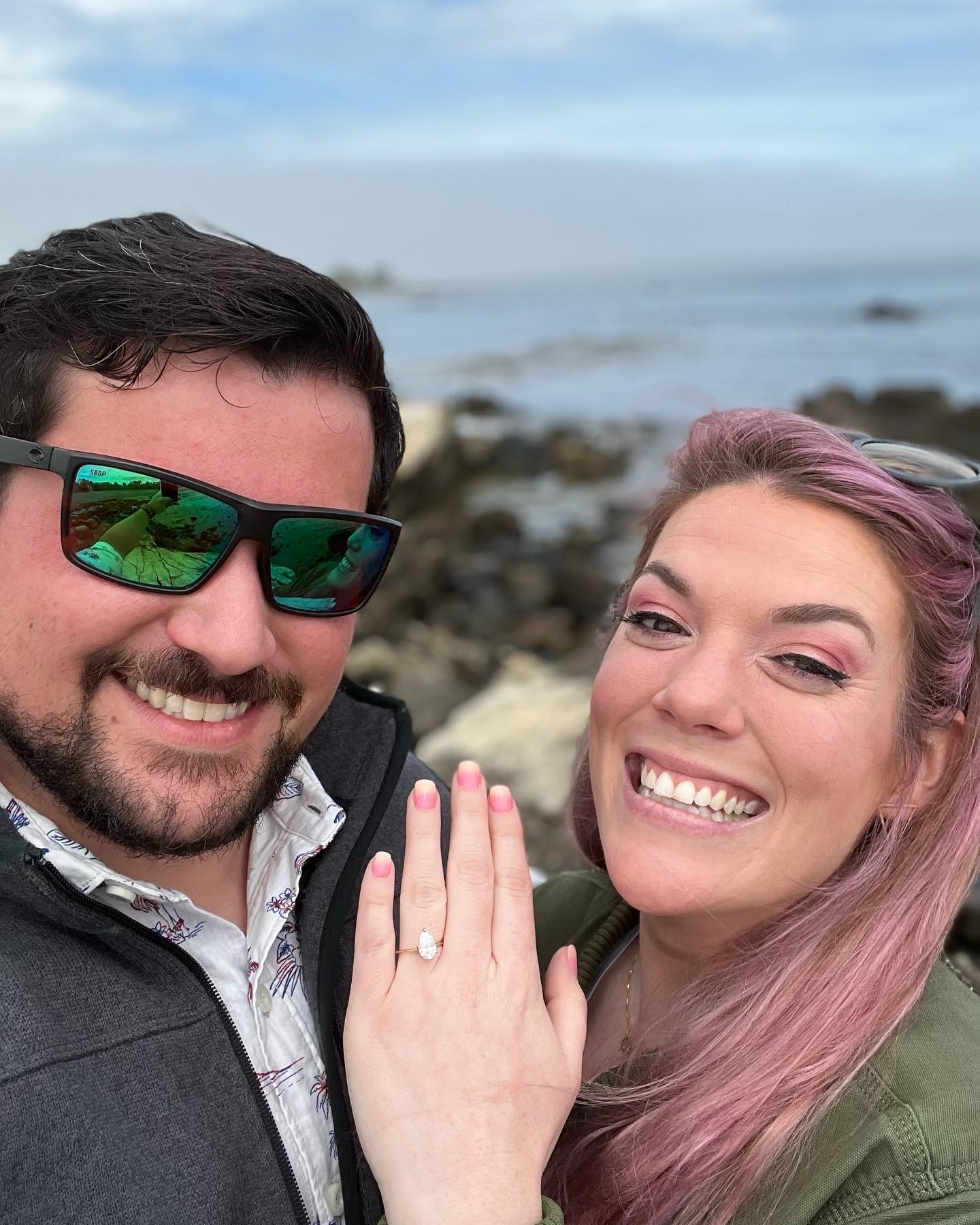 May 15, 2022 Odiorne Point State Park, Portsmouth, NHAfter a late shift, the following morning Chad invited Cookie for a light hike along the water of Portsmouth, NH. Upon standing on a large rock along the ocean, Chad surprised Cookie by dropping to his knee and asking her to marry him. Of course Cookie had immediate uncontrollable crying. Through her tears, Chad could not hear her say yes, having to ask her again. Once Chad heard an audible YES through the choking tears, he stood there holding the box. This was followed by a few awkward minutes of Chad holding the box waiting for Cookie to take the ring and Cookie waiting for Chad to put the ring on her finger. Eventually Cookie put the ring on her finger with success of not dropping it on the ocean floor. After walking along the ocean hand in hand, they eventually made it back to their car to call their family members and eat a BOMB meal at Surf Restaurant, Portsmouth.